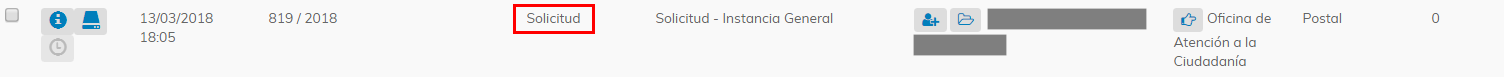 Solicitudes en trámite. Se muestran aquellas solicitudes con expediente iniciado, es decir, con el estado "Iniciado".