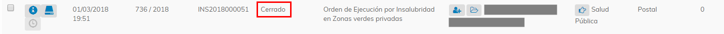 Finalizadas. Se muestran aquellas solicitudes con expediente iniciado, es decir, con el estado "Cerrado".