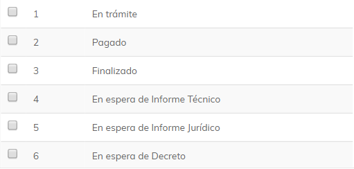 Con estos check podemos filtrar las solicitudes por el estado en el que se encuentran.