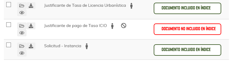 Por cada documento, encontramos algunos iconos, que nos muestran información del documento o con los que podemos ejecutar acciones.