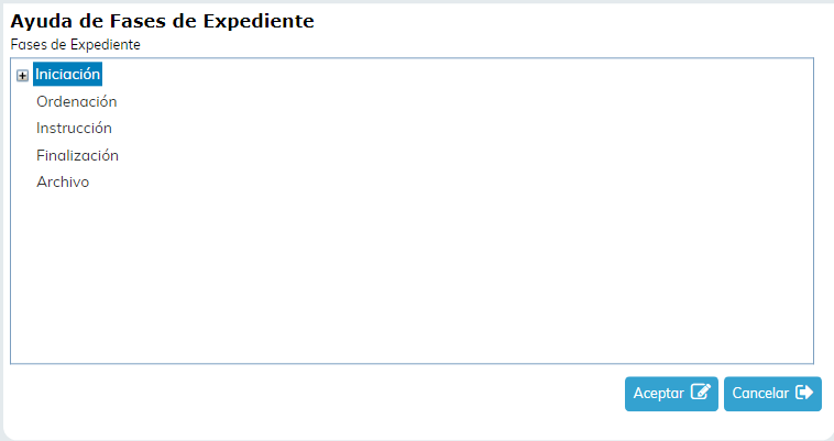 En esta flecha podemos desplegar las distintas fases en las que se puede encontrar un expediente.