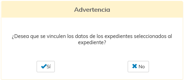 Una vez confirmemos la relación, podremos vincular los datos de los expedientes secundarios a los expedientes principales.