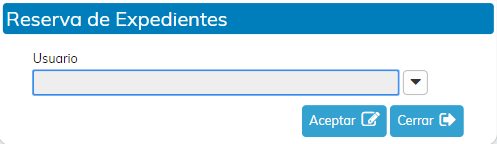 Existe la posibilidad de asignar/reservar expedientes a usuarios concretos. Los usuarios disponibles a los que reservar/asignar expedientes serán los pertenecientes a la unidad tramitadora del propio expediente.