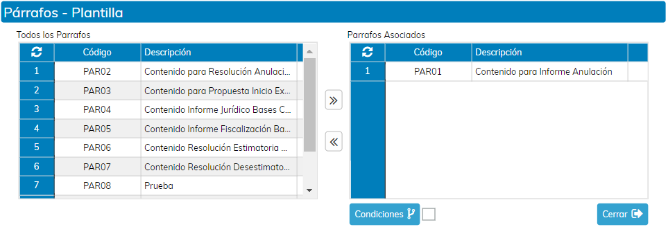 Hay que aclarar que la descripción o el código del párrafo de usuario, que vamos a seleccionar no tiene importancia, ya que, como hemos comentado, estamos seleccionando un bloque de contenido para poder redactar a continuación. Los criterios, a la hora de dar un código o una descripción en la creación de párrafos de usuario están explicados en el Mantenimiento de Párrafos de Usuario.