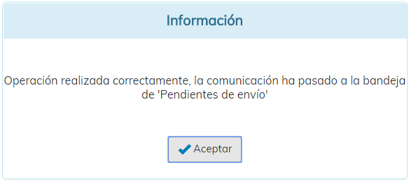 Si ejecutamos esta acción, la comunicación no se eliminará, sino que se alojará en la bandeja Pendientes de envío.