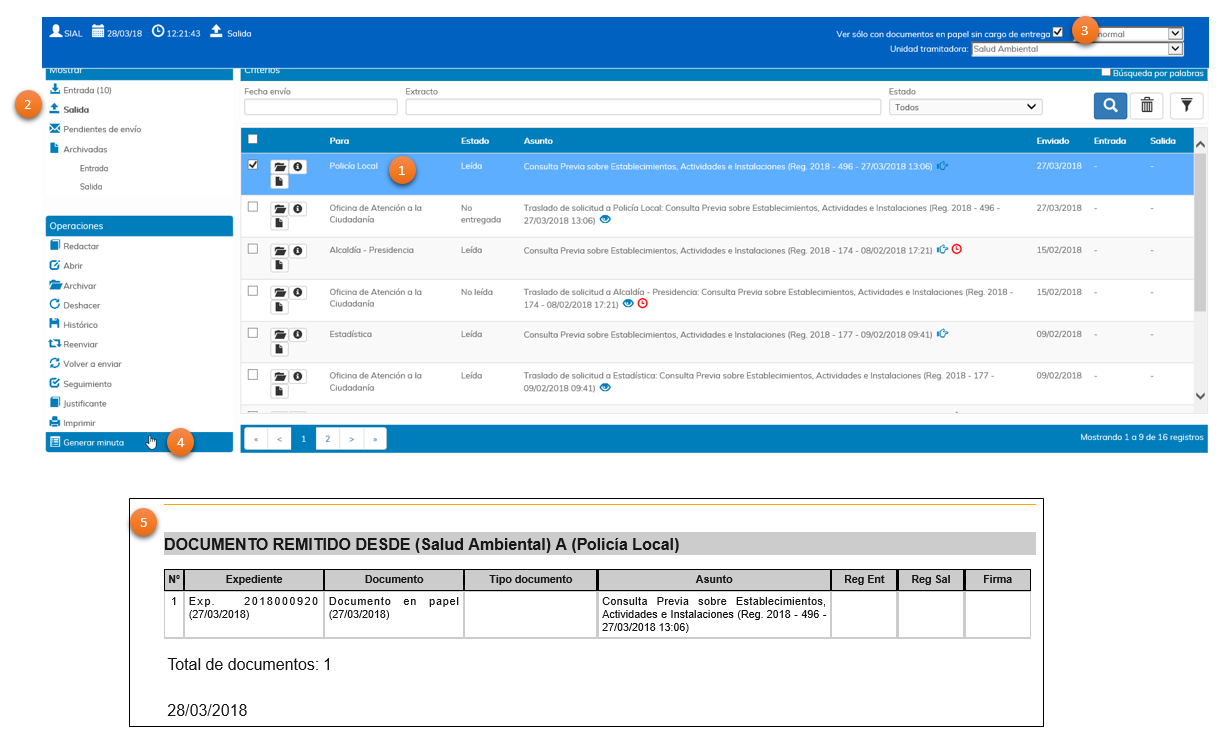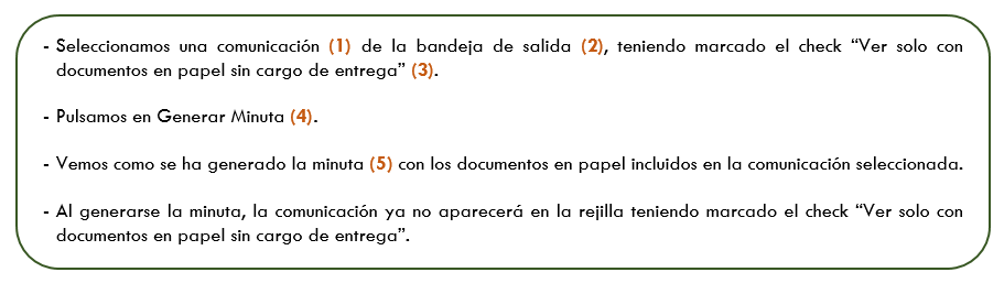 Al marcarlo, aparecerán todas las comunicaciones de salida que contengan documentación en papel y para las que no se haya generado minuta.